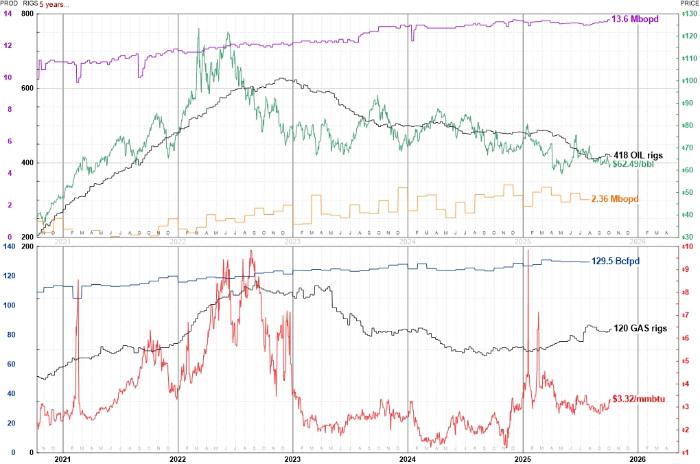 418 rigs (-4) | 10/10/2025 |  • OIL rig count |